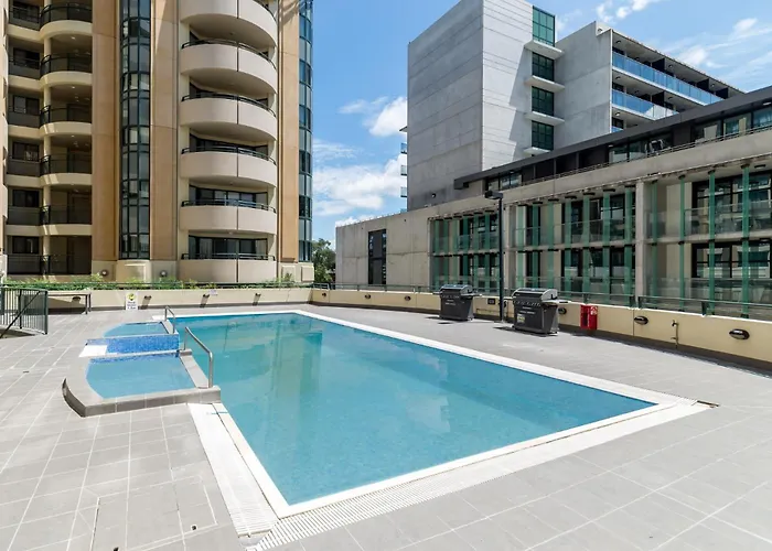 Central 2-Bed Apartment With Pool, Gym And Spa Canberra comprend une terrasse et est situé à environ 5 minutes de marche de Reserve Bank of Australia. De plus, il y a une piscine extérieure pour garantir un séjour plus agréable.